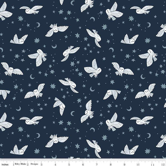 Twilight Creatures Night Owls Indigo C15362-INDIGO by Natàlia Juan Abelló for Riley Blake animals trees stars 100% cotton fabric
