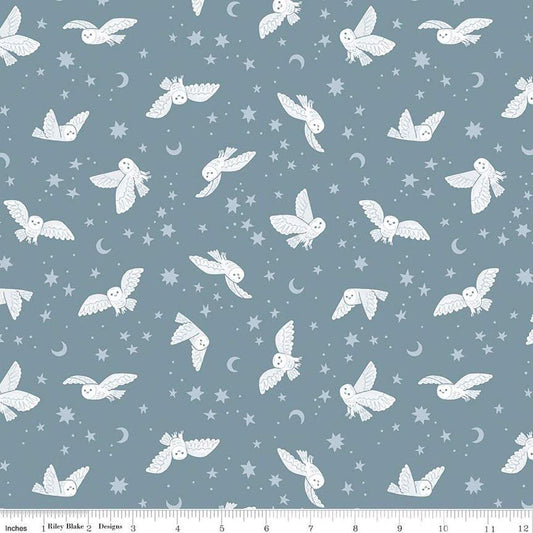 Twilight Creatures Night Owls Storm C15362-STORM by Natàlia Juan Abelló for Riley Blake forest animals trees stars 100% cotton fabric