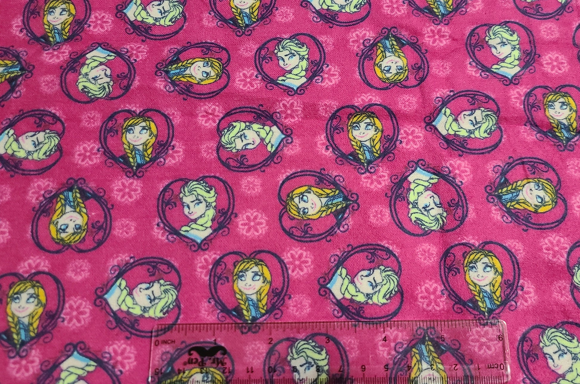 Disney Fabric, Frozen Fabric: Disney Frozen Sisters Anna and Elsa sisters set heart Flannel 100% cotton flannel fabric